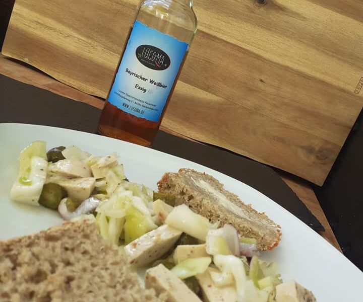 Weißbieressig.Dazu ein frisches Bauernbrot