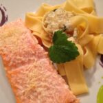 Die Hälfte des Salzes und 2 Eiweiß, so wie 150ml Wasser zu einem Brei vermischen und in einer Form ausbreiten,so das der Fisch darauf gebettet werden kann.Nun den Fisch mit dem Steckerlfisch-Gewürz von innen befüllen, den Bauch wieder zusammenklappen und die Prozedur mit dem Salzbrei wiederholen, um den Fisch damit zu bedecken.