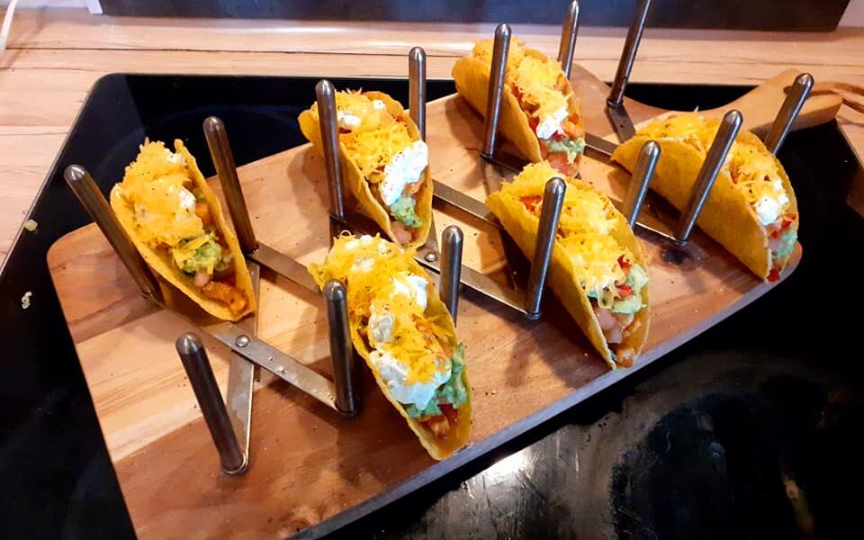 Als letztes noch die Taco Shells nach Packungsanweisung erhitzen. Nun alles nach Belieben zusammenbauen.
