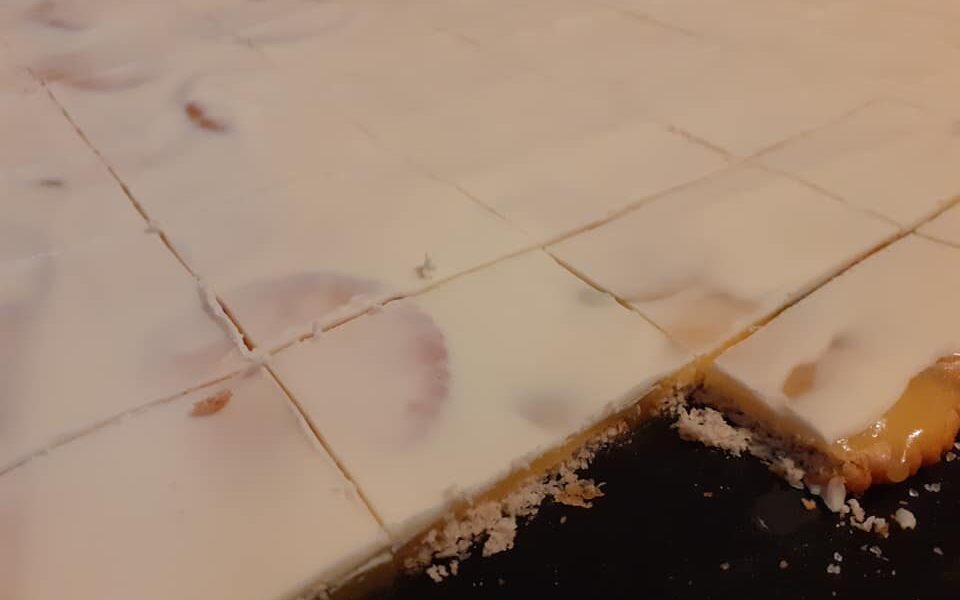 Nun Selbige über die Crackermasse gießen und nun Alles komplett erkalten lassen.