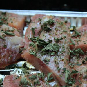 - Alle Zutaten vom Fisch miteinander vermengen, Knoblauch pressen und den Fisch damit gut einreiben und die Marinade für 1 h einziehen lassen.Derweil machen wir den Rest.Kartoffeln vorkochen, nicht schälen (dann geht’s auf dem Grill später schneller).Kartoffeln abschrecken und halbieren. Kartoffeln zum Beispiel auf einer Aluschale oder Gemüsekorb legen und Kräuter darauf verteilen.Für den Gurkensalat die Gurke waschen, wer mag schält sie,in Streifen oder Würfel schneiden und in eine Schüssel geben.Zitronenmelisse abwaschen und kleinschneiden. Knoblauch fein schneiden, Zwiebel ganz klein würfeln und alle restlichen Zutaten mit dem Joghurt vermischen und ziehen lassen.Fisolen ca 10 Minuten im Wasserbad kochen und danach direkt abschrecken und in eine Schüssel geben.Frühlingszwiebeln in Streifen schneiden und unter die Fisolen mischen.Nun aus dem Rapsöl und dem Essig ein Dressing zaubern und mit Salz und Pfeffer abschmecken.Dressing über den Fisolensalat geben.Den Holzkohlegrill für indirekte Hitze vorbereiten.Im direkten Bereich liegen die Kartoffeln nur noch kurz für die Farbe.Der Fisch kommt in den indirekten Bereich mit einer Aluform, da die Filetstücke sonst durch den Rost fallen könnten beim Wenden.Deckel drauf und nach ca.5 Minuten den Fisch wenden.Alles zusammen servieren und guten Hunger.