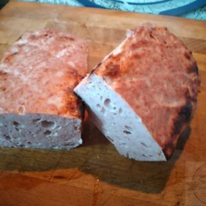 Dieser Leberkäse wird aus Putenoberschenkel hergestellt und steht dem richtigen Leberkäse nichts nach. Wer es also etwas fettarmer mag, aber auf Leberkäse nicht verzichten möchte oder eine Scheibe mehr essen möchte, ist hier genau richtig.