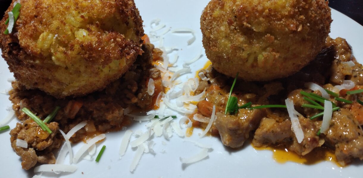 - Das Vorbereit der Füllungen und des Reis machen wir am Vortag.Den Reis in einer großen Pfanne erhitzen, aber nur kurz und dann nach und nach den Wein hinzufügen und dabei ständig rühren.Als nächstes immer wieder Wasser dazugeben bis der Risotto schlotzig ist.Nun den Risotto abkühlen lassen und über Nacht im Kühlschrank aufbewahren.Die Bratwurst vom Darm befreien, Fenchel, Karotten,Zwiebel fein schneiden.Die Bratwurst in der Pfanne krümmelig braten und dann das Tomatenmark und das Gemüse hinzugeben.Wenn alles schön angeröstet ist, mit Weißwein ablöschen, das Italia Salz unterrühren und alles einreduzieren lassen.Auch hier wieder abkühlen lassen und im Kühlschrank lagern.Mit dem Ragu verfahren wir genau wie mit der Salsiccia Füllung.Am Tag des Geschehens.Legt euch alles griffbereit hin und eine Schüssel mit Wasser.Das Wasser ist für die Hände, beim Befüllen und Formen der Arancini, denn dann "flutscht" es besser.Formt euch die Bälle alle vor. Ungefähr auf Orangengröße oder etwas kleiner.Nun halbiert die Arancini und nehmt eine Hälfte in eure Hand, bildet eine Mulde und füllt diese mit den Füllungen und streut noch frischen Parmesan hinein oder Mozarella.Also eine Hälfte Risotto,Füllung, dann die andere Hälte des Risotto und nun schön rund formen.In Italien gibt es oftmals verschiedene Formen, diese dienen dazu die Füllungen zu unterscheiden.Sind alle Arancini gefüllt, dürft ihr schonmal die Fritteuse auf ca 170 Grad erhitzen.Nun die Arancini erst im Ei und dann im Paniermehl wälzen und danach in der Fritteuse ca 3-4 Minuten frittieren.Zum warmhalten, bis alle Arancini fertig sind kann man sie problemlos im Ofen parken.Als Beilage empfiehlt sich ein Salat oder der Rest der Füllung.