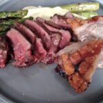 - Den Spargel mit etwas Rapsöl beträufeln und das italienische Kräutersalz darauf verteilen und in einen Gemüsekorb geben.Das Rib-Eye-Steak mit etwas Honig bepinseln.Nun widmen wir uns der Sauce Bérnaise.Den Wein mit 1 Tl Estragon, dem Lorbeerblatt,Pfeffer,Salz und Zucker einreduzieren lassen.Butter zeitgleich schmelzen.Nun die Reduktion durch ein Sieb geben, mit dem Eigelb über einem Wasserbad schaumig schlagen und die Butter in einem feinen Strahl unterrühren bis es eine schöne Konsistenz hat.Hinweis: Man kann natürlich auch eine fertige Sauce Bérnaise kaufen.Grill voll aufheizen und das Steak je Seite ca 1 Minute scharf anbraten und dann zusammen mit dem Spargel in den indirekten Bereich legen.Das Steak ziehen wir bis zur Kerntemperatur von 51 Grad und lassen es dann noch 5 Minuten ruhen, wenn der Grill ausgeschaltet ist.Steak mit dem Spargel und der Sauce anrichten und über alles nochmal das italienische Kräutersalz geben.