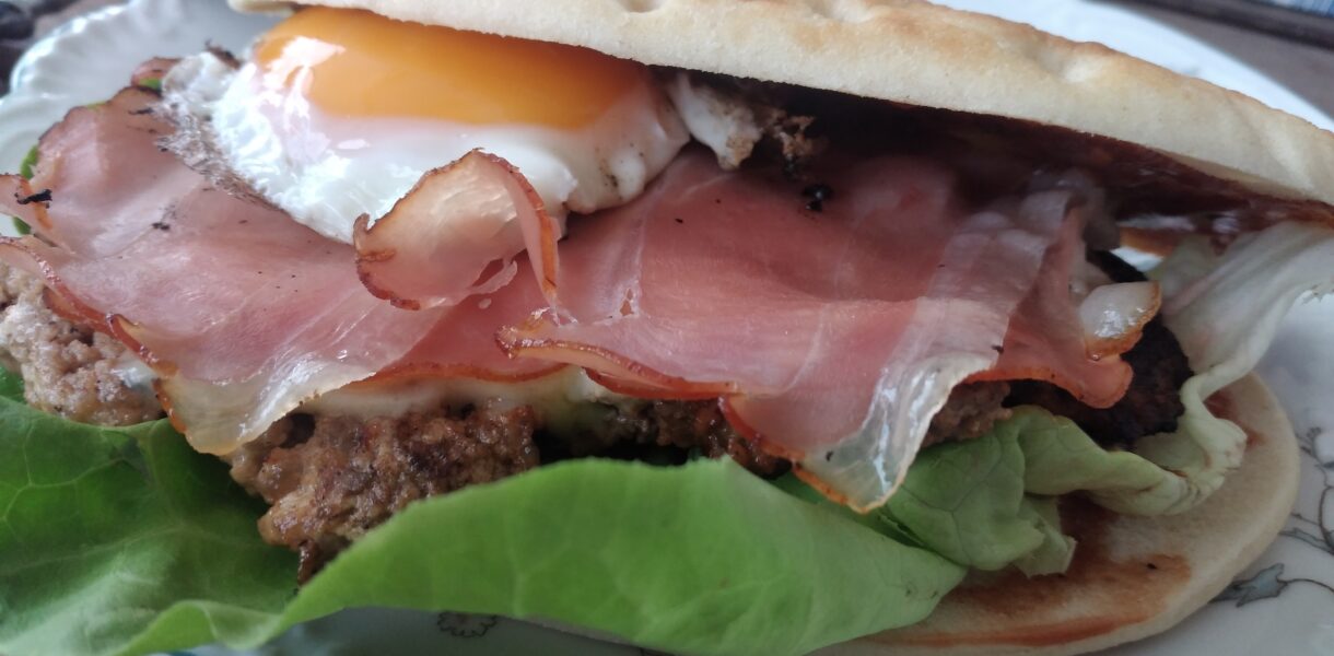 - Hack mit Quark und dem Rub vermischen.Wir haben die Patties dann auf die Feuerplatte gesmashed, man kann sie aber auch formen.Grill/Feuerplatte für indirekte Hitze vorbereiten.Patties und Spiegelei darauf grillen.Nun kommt noch der Käse mit dem Schinken auf das Pattie.Zum Schluß das Spiegelei darauf legen und auf dem Panini servieren.Sauce nach eigener Wahl.Geht schnell und schmeckt wirklich verdammt lecker.