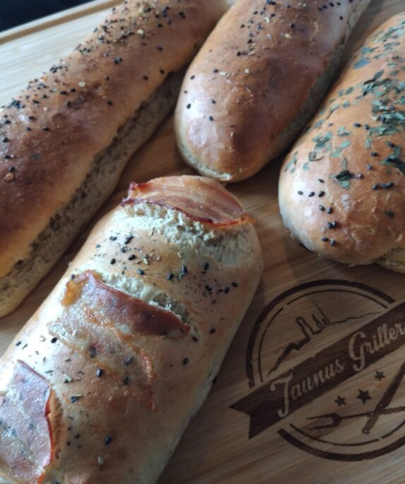 Die drei Fleischvarianten sind Reste des langen Wochenendes.Dazu habe ich Baguettes zubereitet mit Bärlauch-Pesto.Ja das passt wunderbar zum Essen und die Baguettes halten einiges aus.Erklären …