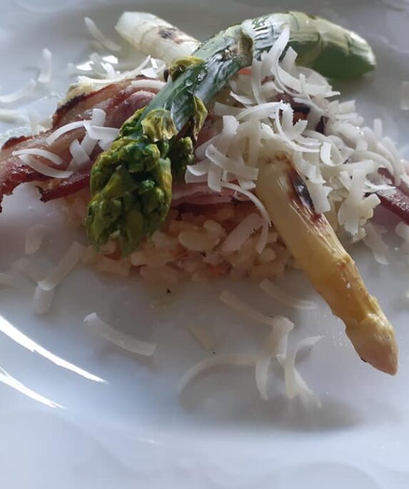 Heute mal lecker Risotto gekocht,dazu Spargel grün und weiß. Für 1 Person: 150 gr Arborio Reis Ca 40 gr milder Gorgonzola 40 gr Parmesankäse 150ml …