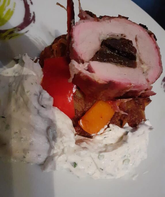 Fleisch + Füllung 900 gr Schweinefilet 2 Pakete Bacon 6 getrocknete Pflaumen Manchego Pfeffer&Salz Beilage 1: 1 rote Paprika 1 gelbe Paprika 2 Schalotten 1 …
