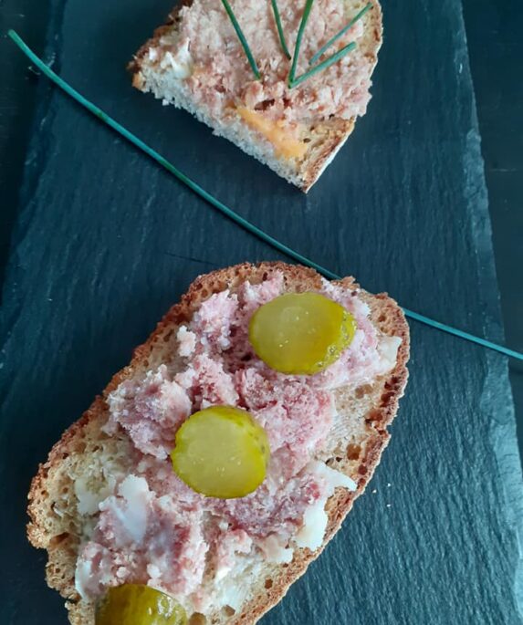 Zutaten Fleisch gleich bei Beidem: 400 g Schweinebauch 600 g Schweinenacken Hack grob: 1 Tl Kümmel 2 g gemahlener weißer Pfeffer 1/4 Zwiebel 22 g …