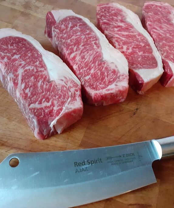 Diese Marmorierung…… 3 Gänge: – Ente auf Wiesensalat – Steak mit Sacchettini und Girasoli – Käseplatte mit Feigensenf Wir bekamen Besuch eines besten Freundes und …