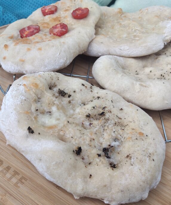 Ein italienisches Brot, das super zum Essen gereicht werden kann.Frisch im Grill auf dem Pizzastein zubereitet.Wir haben 2 Mehlsorten gemischt.