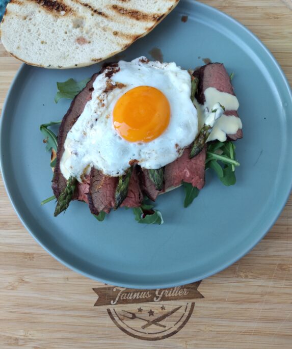 Ein hervorragendes Bürgermeisterstück, grüner Spargel und ein wenig drumherum. Fertig ist das perfekte Panini.